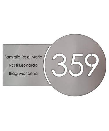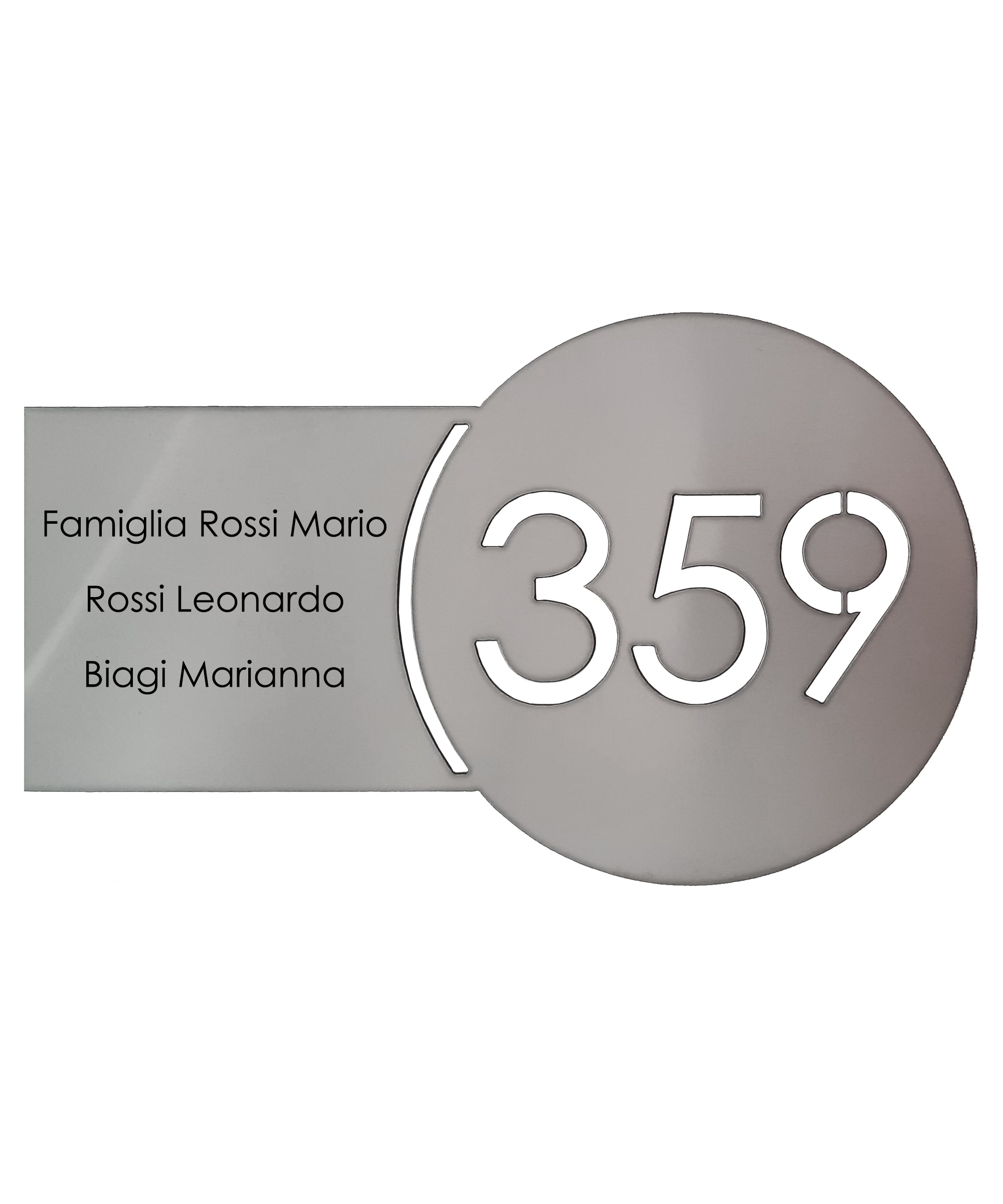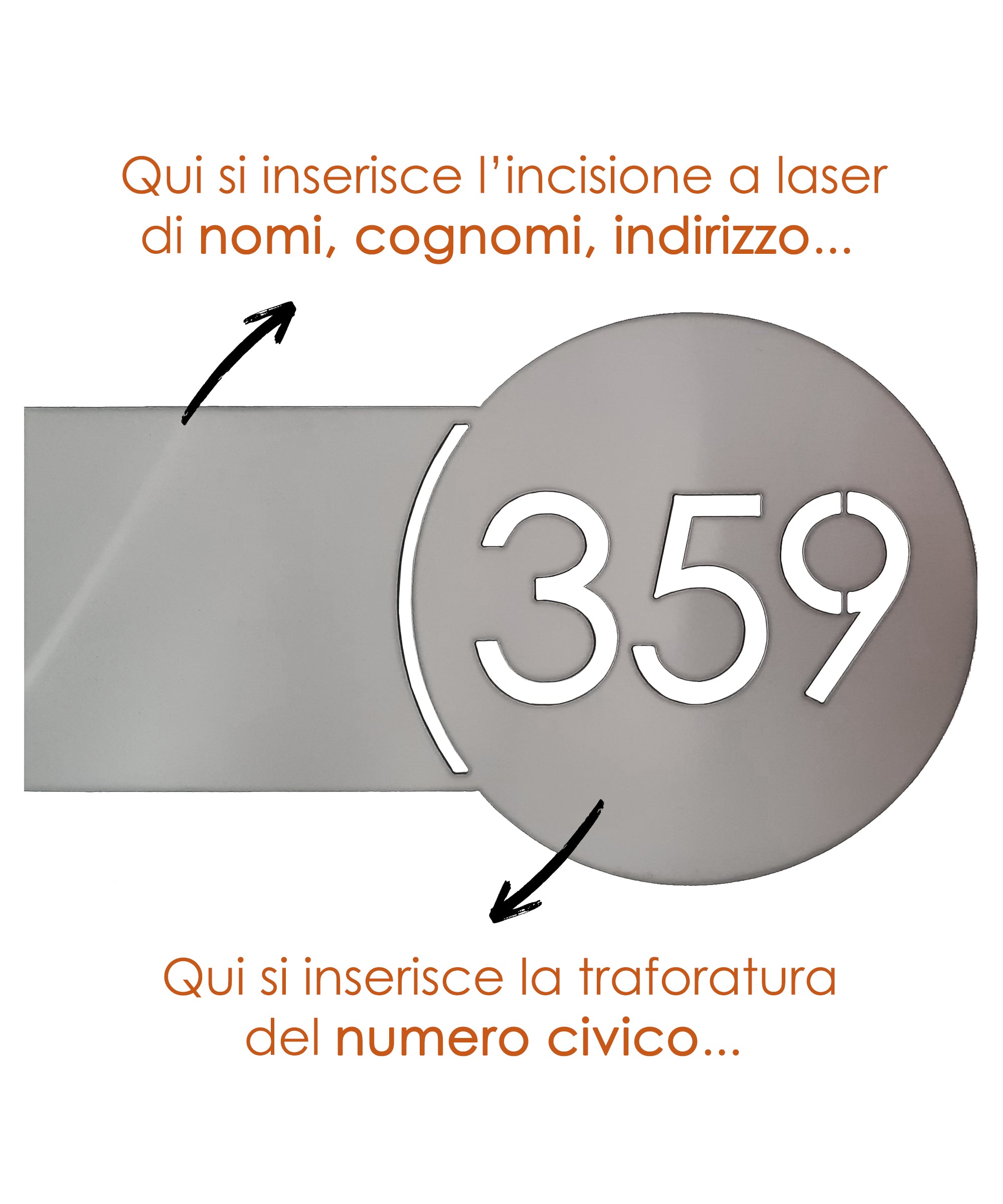 La targa è realizzata in acciaio inox di alta qualità, tagliato con tecnologia waterjet, per quanto riguarda il numero civico, ed incisa a laser, per quel che concerne l'incisione del testo. La lucidatura è effettuata a mano.