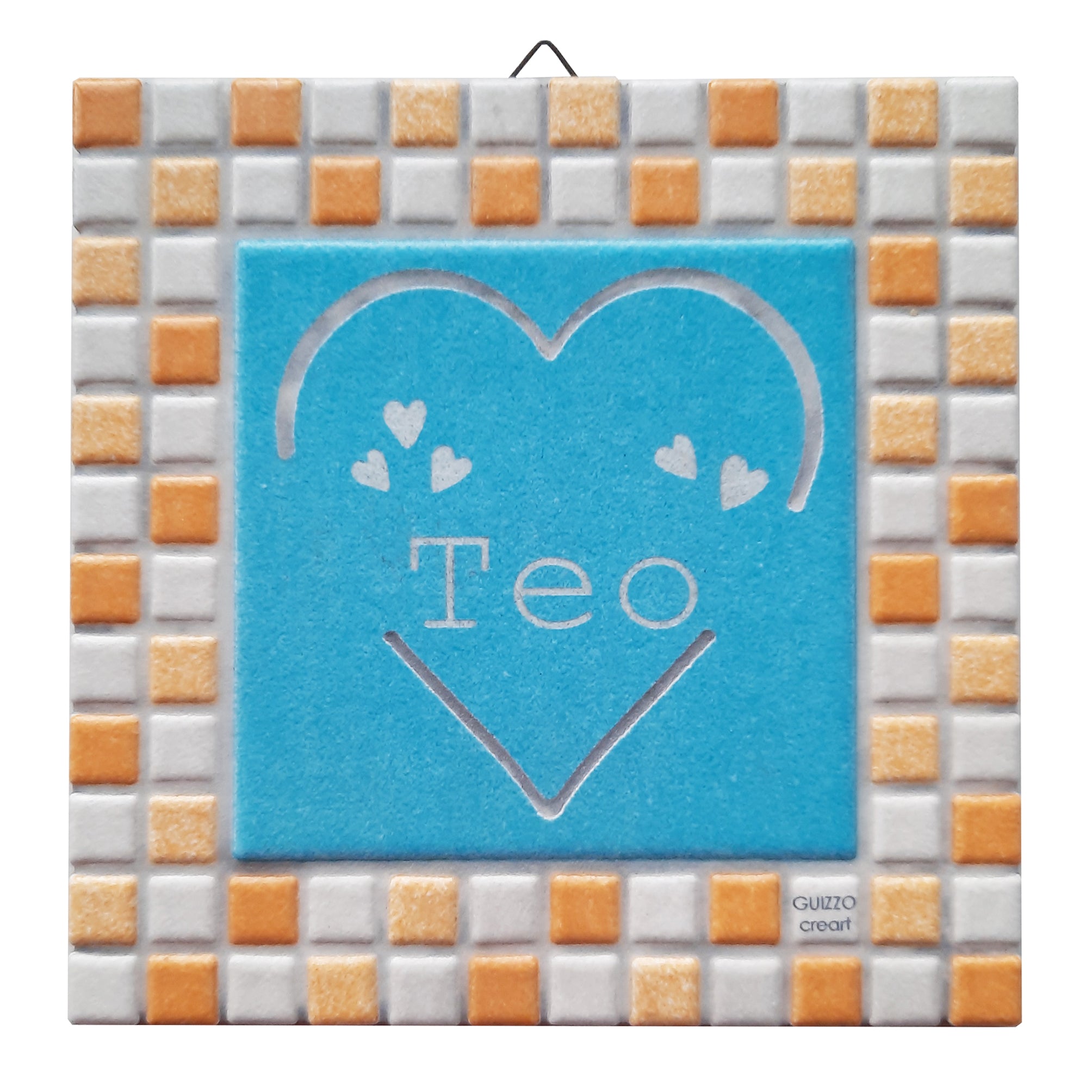 Fiocco Nascita in ceramica personalizzato – Bimbo e Bimba | Quadro 14x14 cm