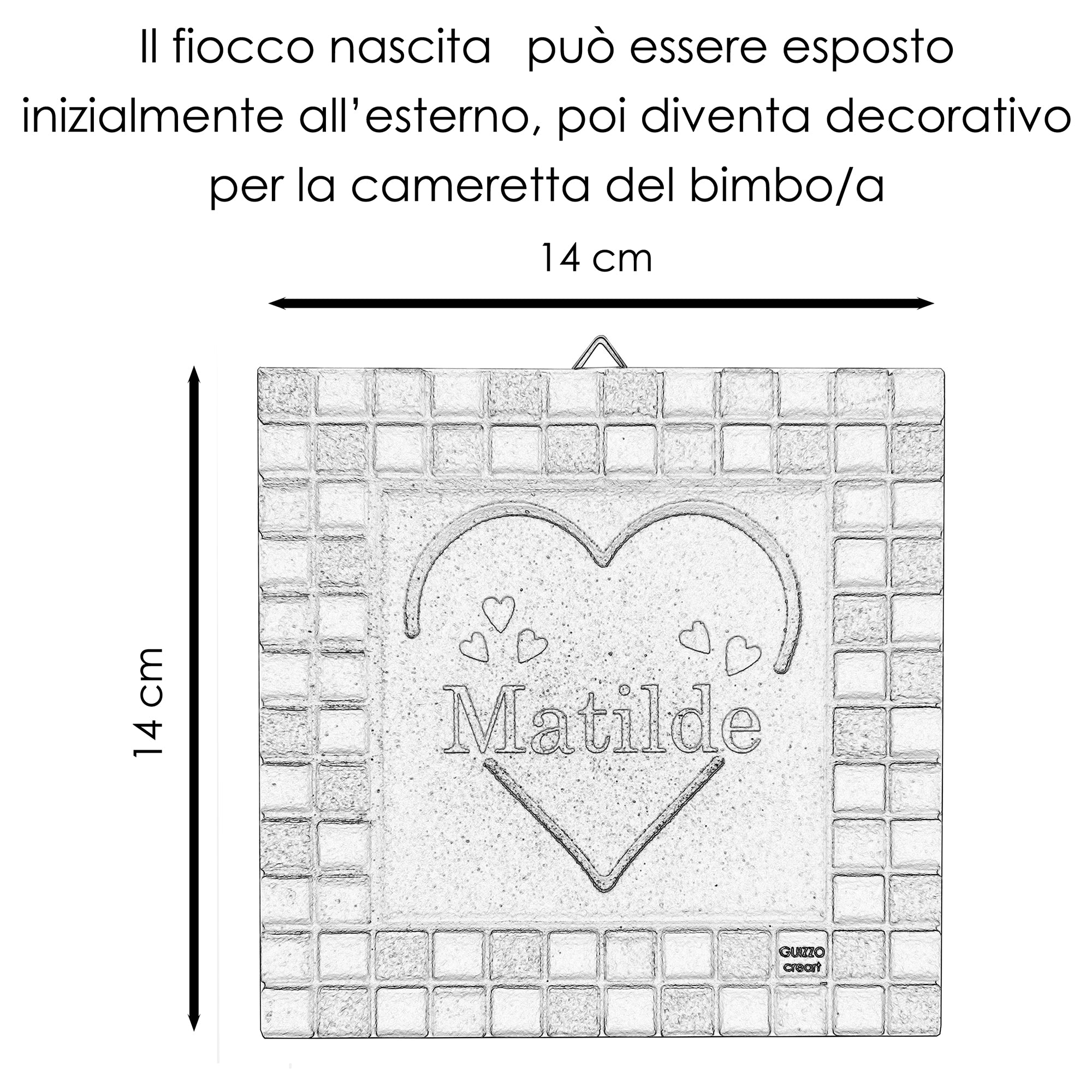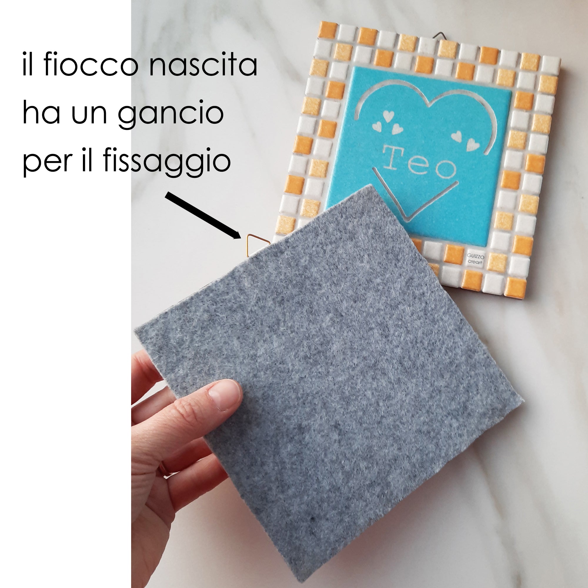 Realizzato in ceramica artigianale, il fiocco nascita è:
