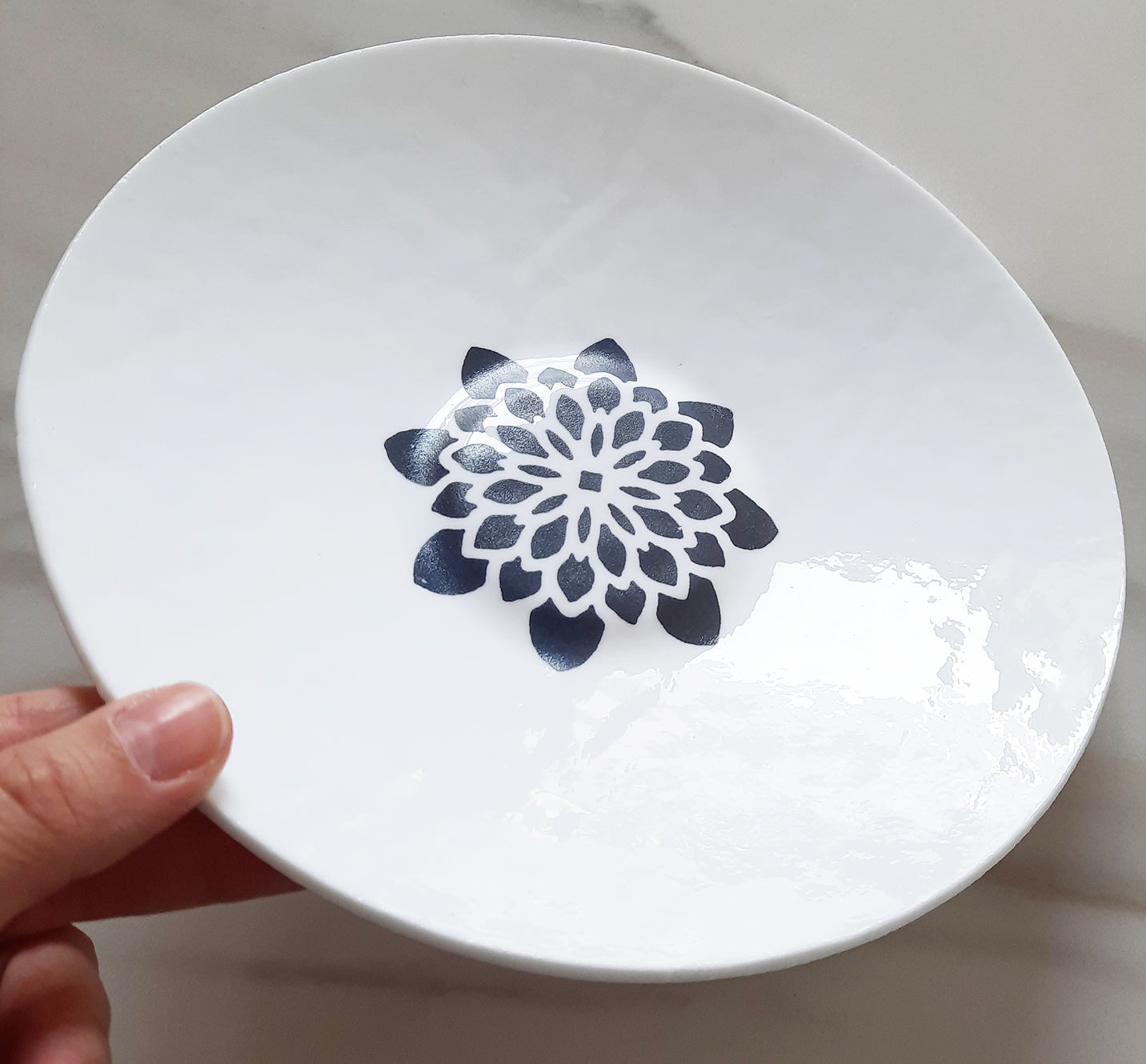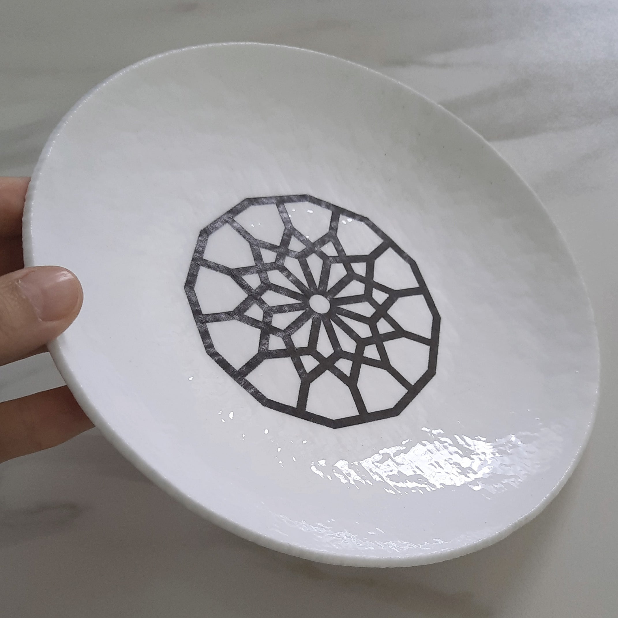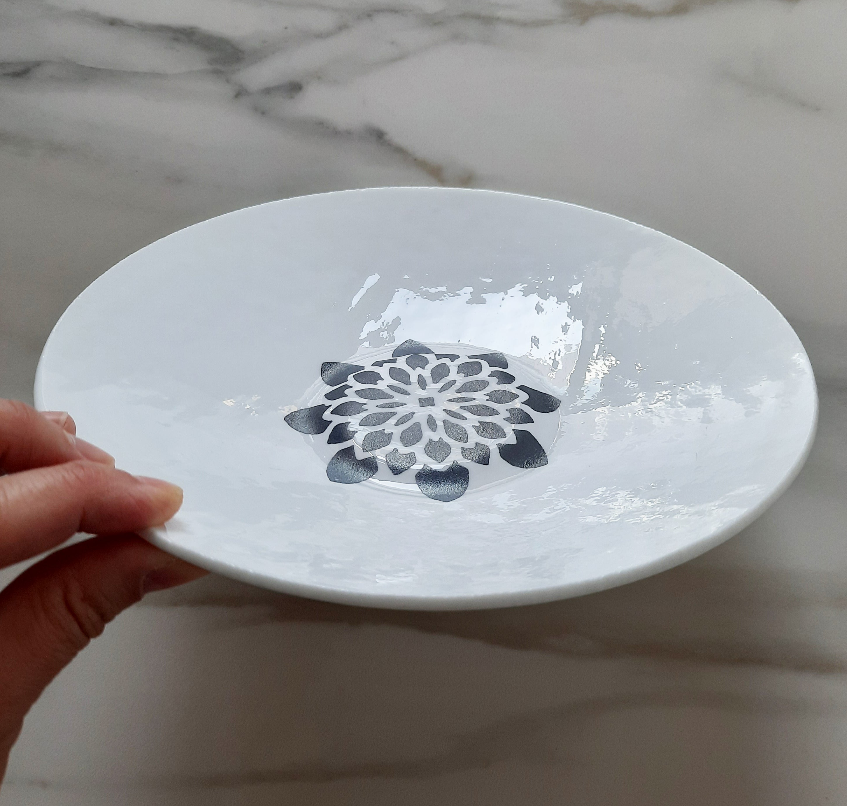 Piatto in vetro di Murano bianco con incisione – Diametro 21 cm | Pezzo unico artigianale