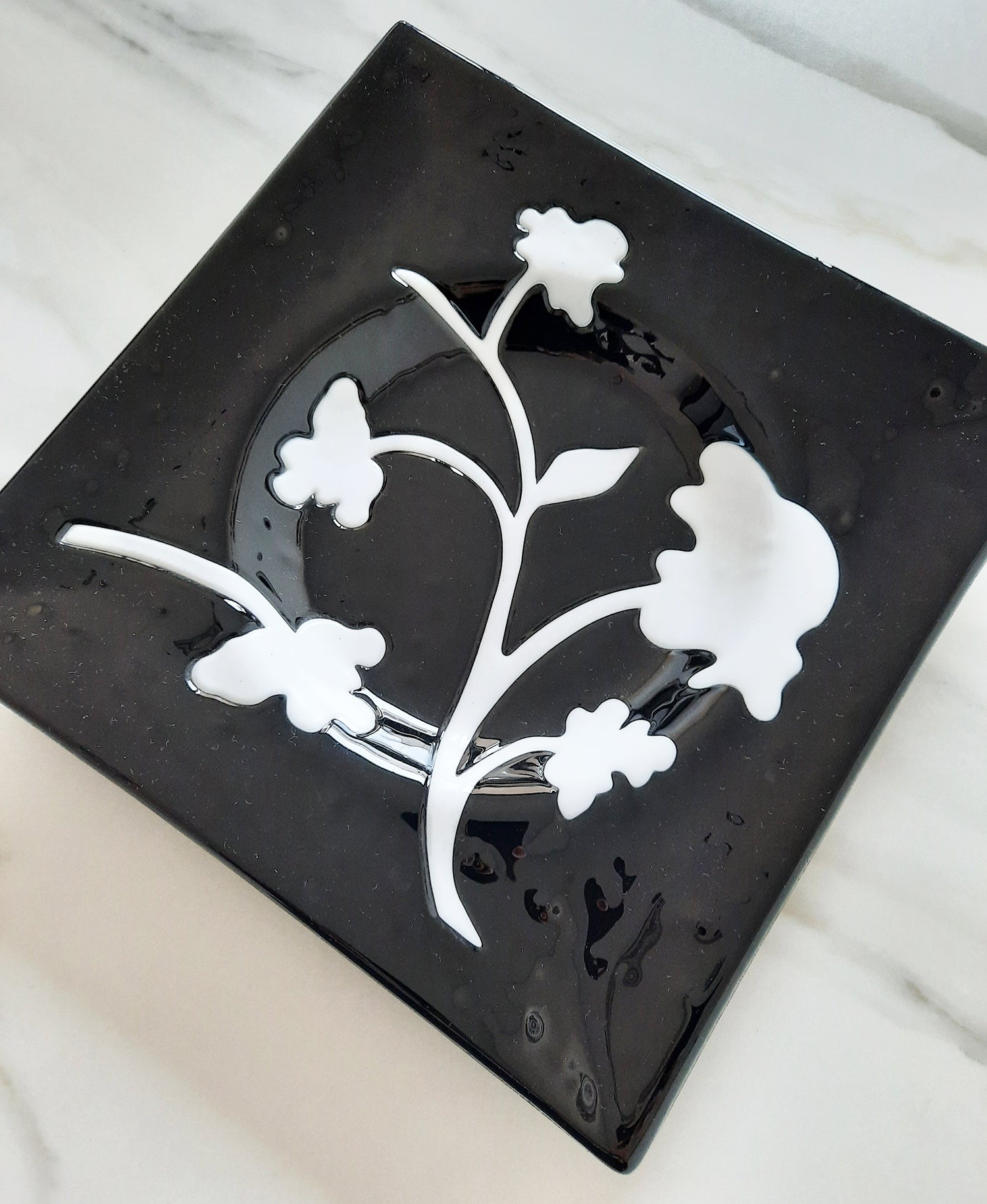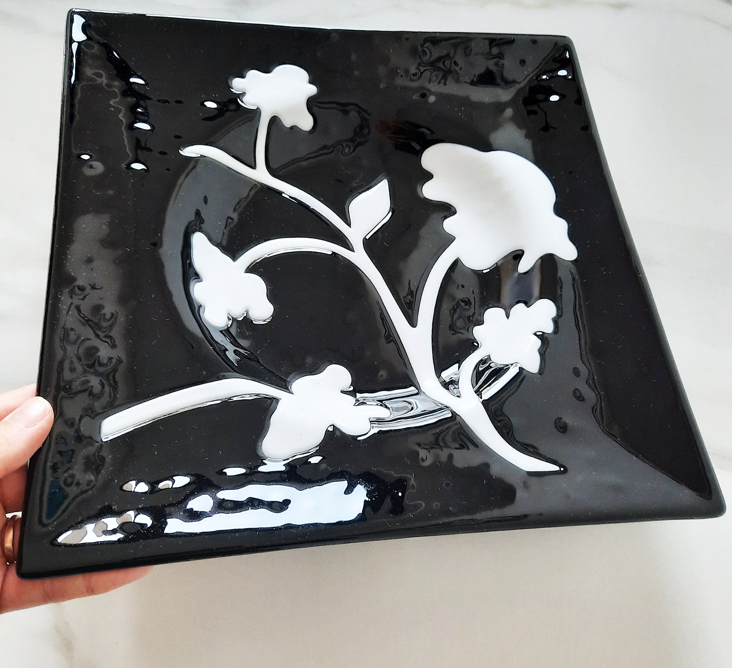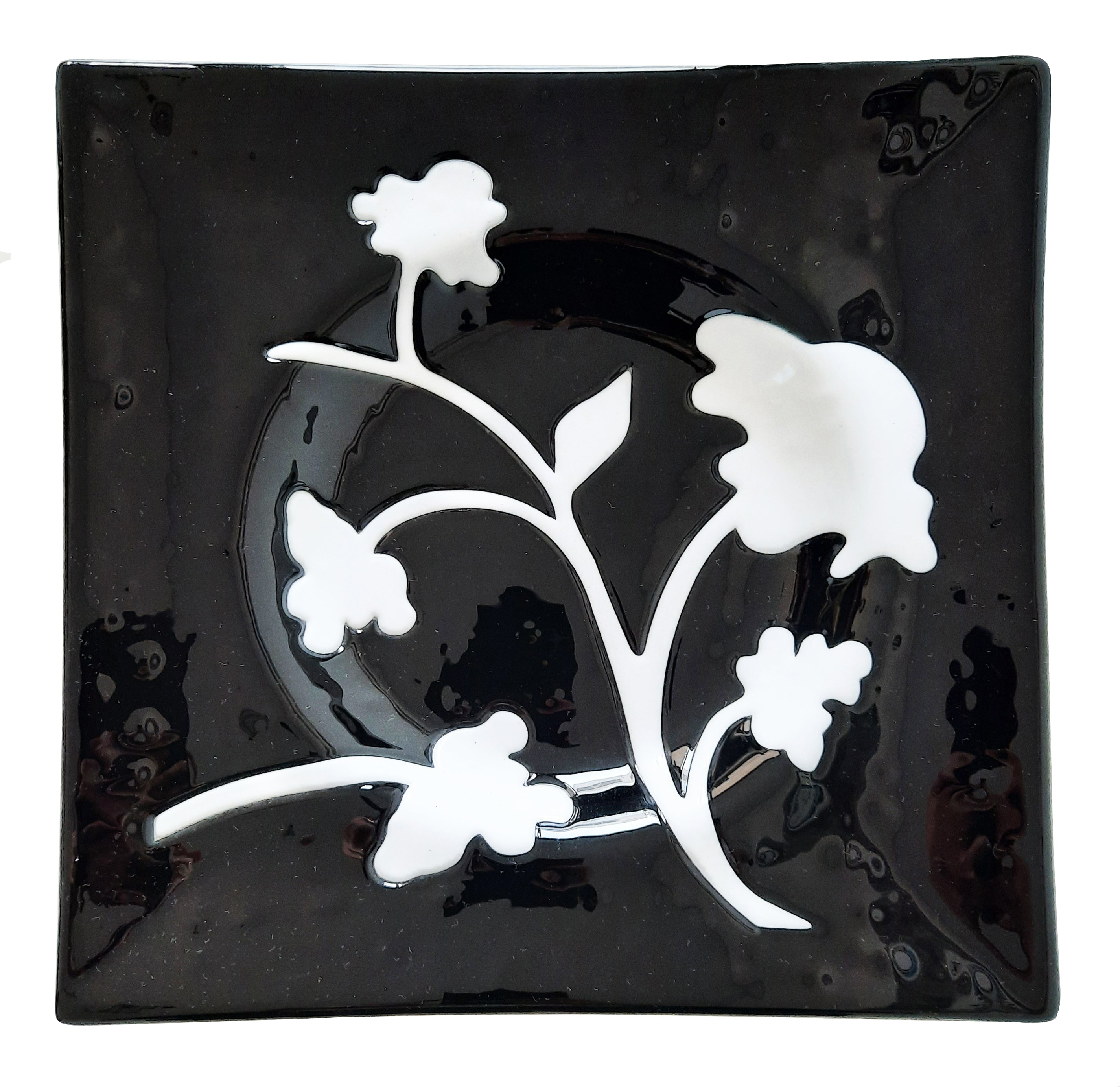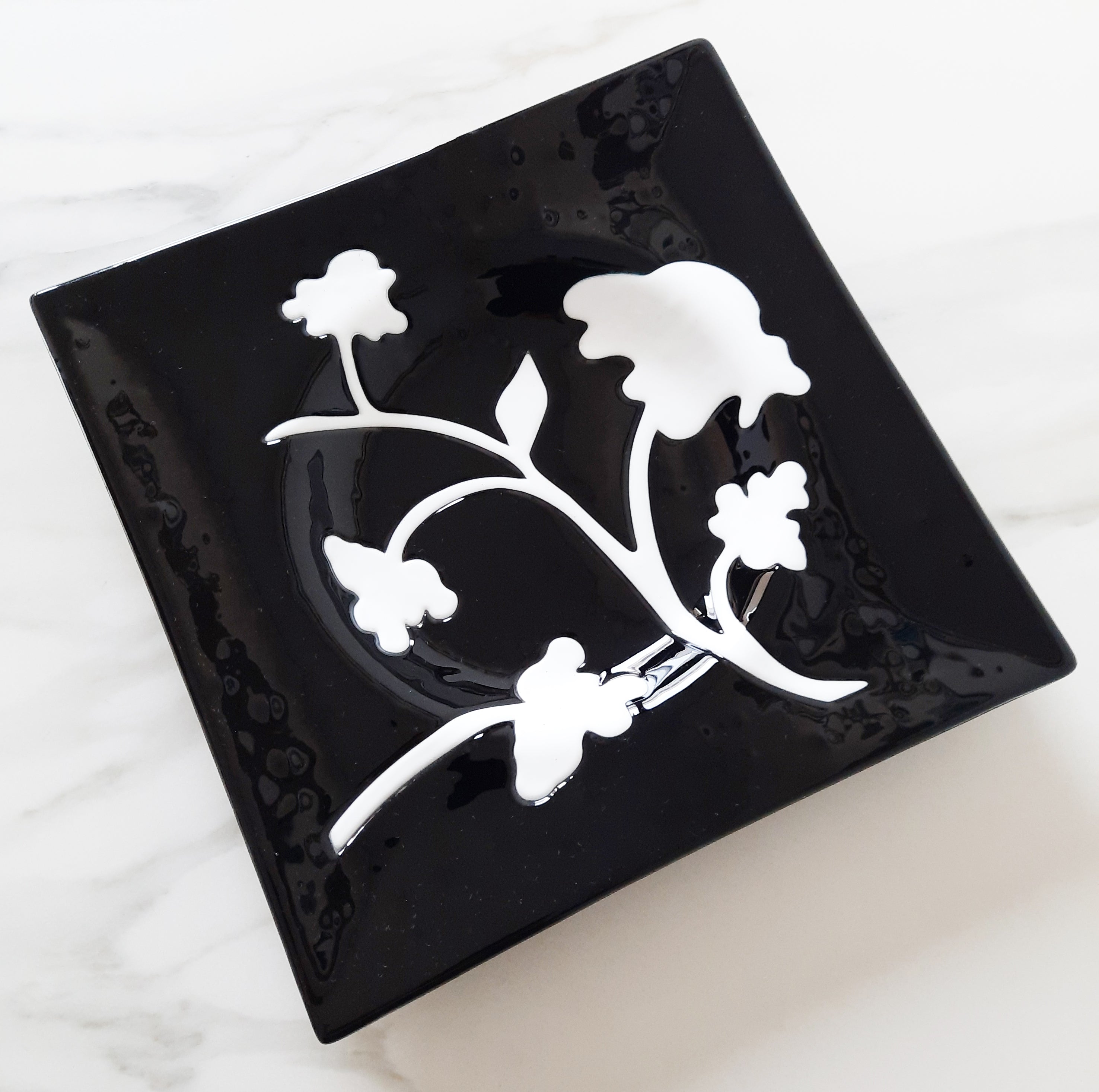Piatto in vetro di Murano Nero Intarsiato – 28x28 cm | Pezzo unico artigianale