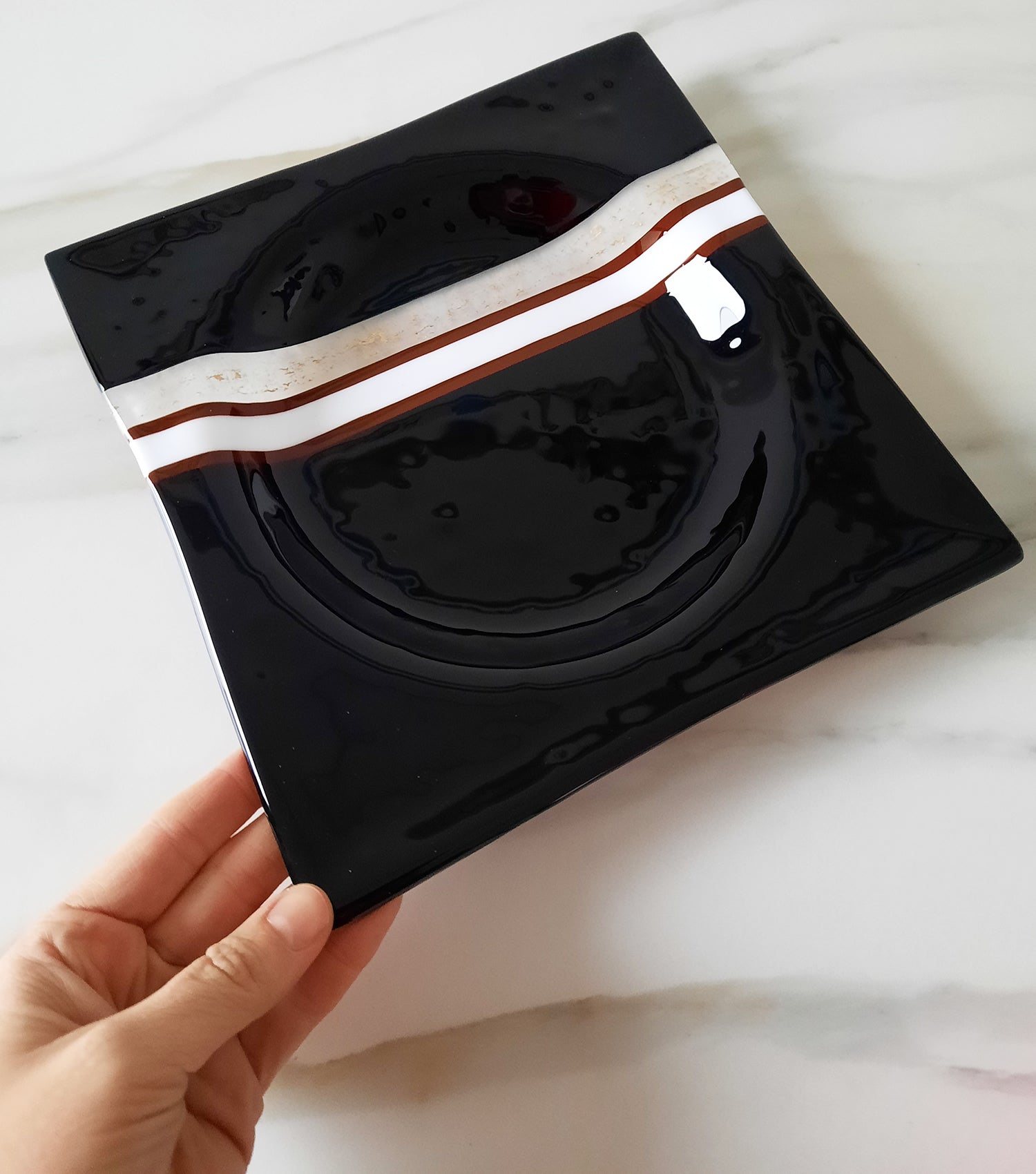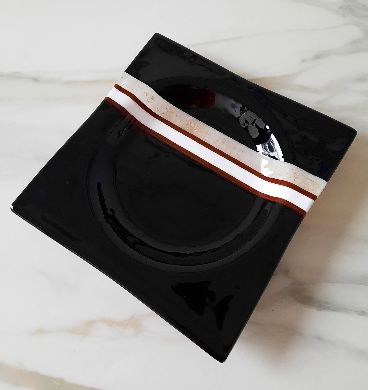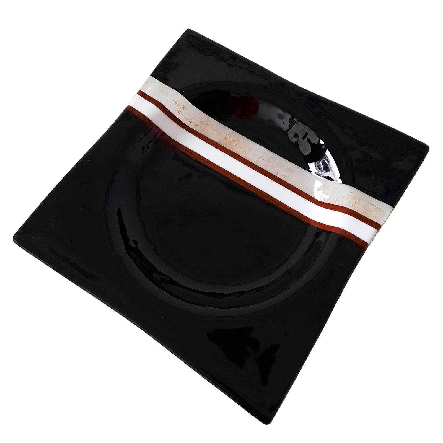 Piatto in vetro di Murano Nero con Tecnica a Fusione – 24 x 24 cm | Pezzo unico artigianale